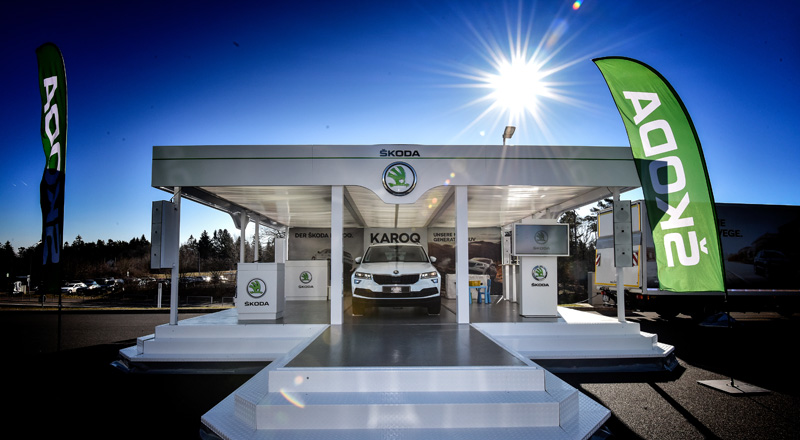 1 Moderator, 3 Promotoren, 1 Kostümträger. Inkl. Musik- und Moderationsanlage, Counter, Gewinnspielkarten, Bistrotische mit Schirm, Losbox, Kinderecke mit Computercases, Kofferraumgewinnspiel