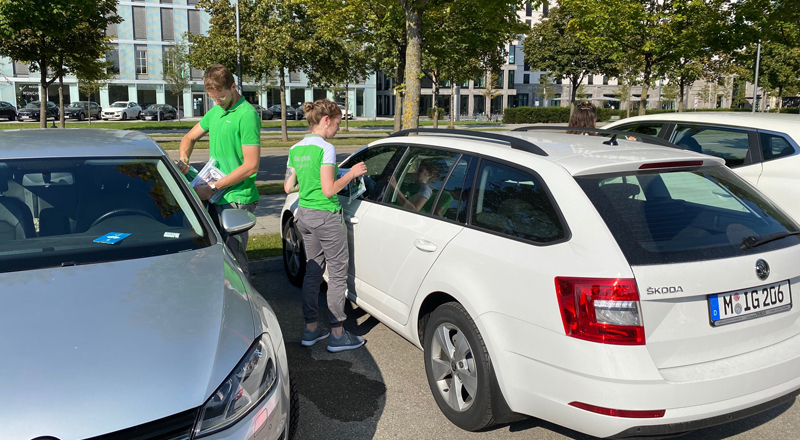 ŠKODA Promotoren bringen die Botschaft aufmerksamkeitsstark an Fremdfabrikatsfahrzeugen sowie älteren ŠKODA Fahrzeugen an.